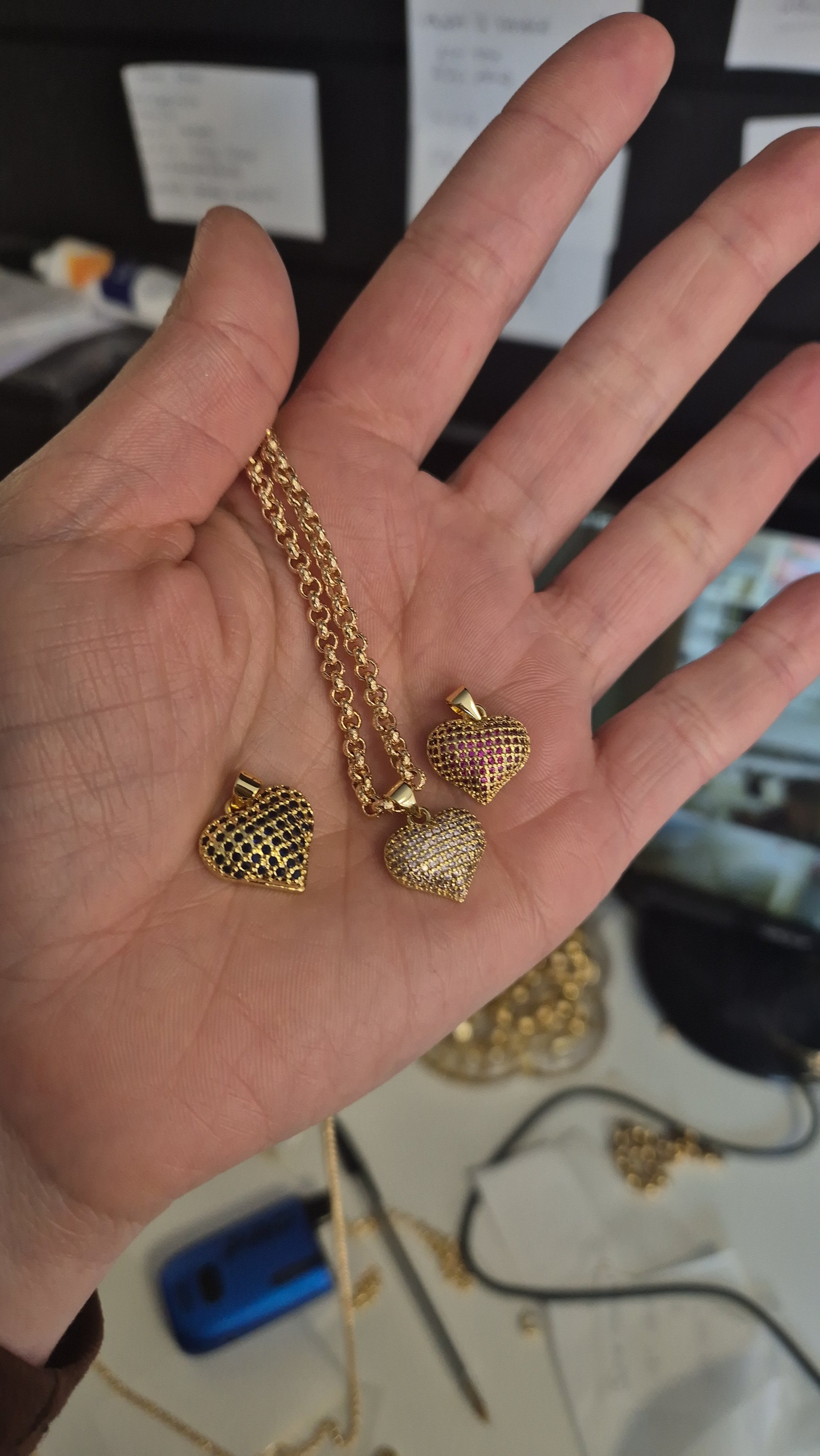 Coloured Heart Pendant On 4mm Belcher Chain