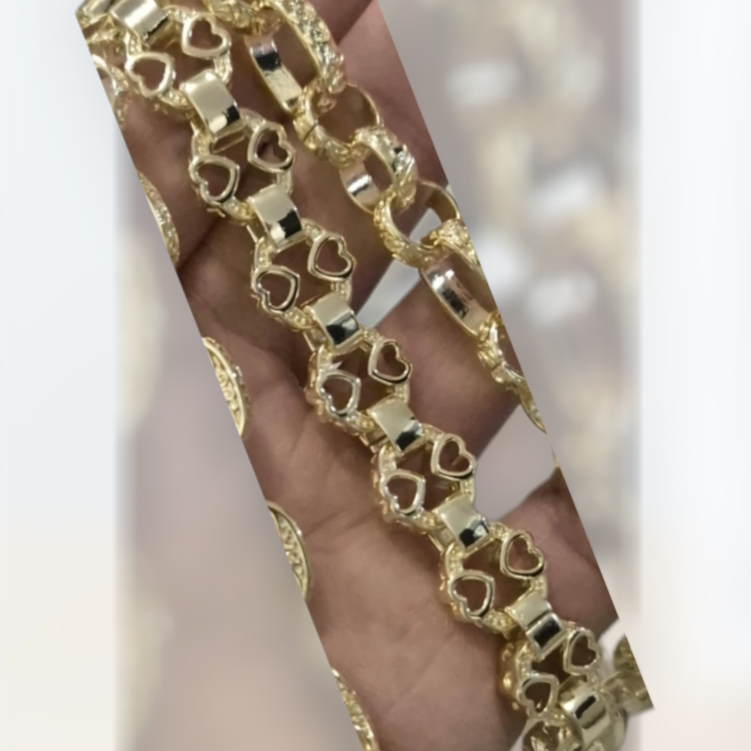 PRE ORDER 10 DAY 12mm Ladies Heart Link Bracelet – 14k Gold Plated (8-Inch Length)