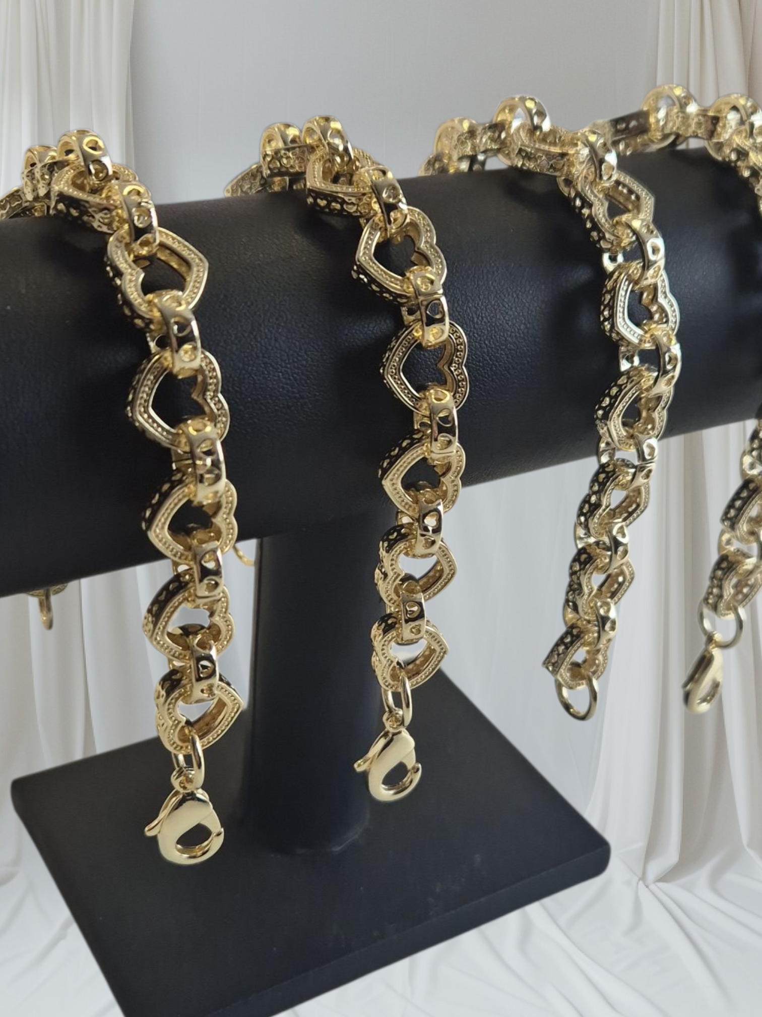 PRE ORDER 10 DAY 12mm Ladies Heart Link Belcher Bracelet – 14k Gold Plated (8-Inch Length)