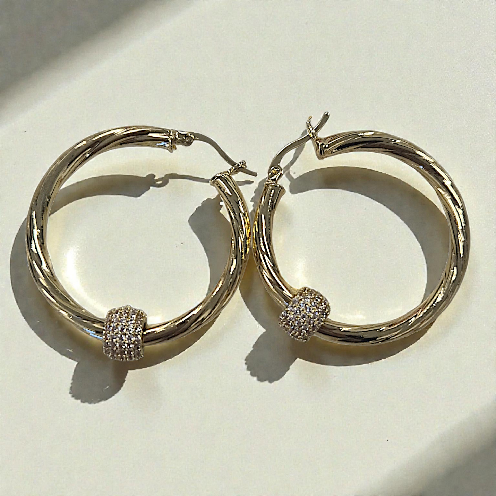 The crystal-clear cubic zirconia adds just the right amount of sparkle, catching the light from every angle. Whether you're heading out for the day or dressing up for the evening, these hoops bring effortless elegance to any outfit.